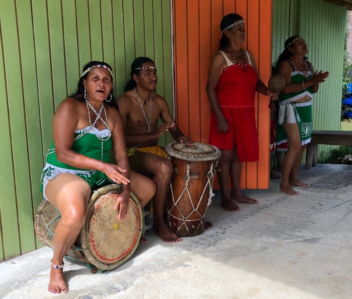 Unser Mittagessen bekommen wir von den Ureinwohnern Dominicas, den Kariben. Es gibt eine köstliche Pumkinsuppe mit Kokosmilch und Knoblauch verfeinert. Und außerdem gibt es Süßkartoffeln, eine gekochte Wurzel, dessen Name ich vergessen habe und verschiedene Salate. Vegetarisches Herz was willst du mehr! Die Kariben zeigen uns danach ihren traditionellen Tanz.