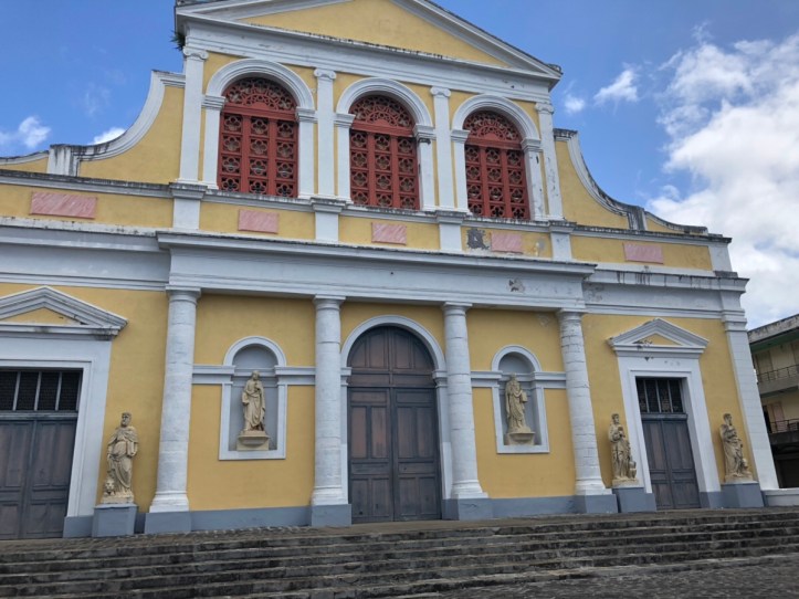 Wir laufen durch die Gassen von Pointe-a-Pitre bis zum Place de la Victoire. Auch Guadeloupe gehört zu Frankreich und man zahlt mit Euro, trotzdem sieht es hier an vielen Stellen ziemlich zerfallen und arm aus. Aber die Menschen machen einen unheimlich entspannten und fröhlichen Eindruck. Ich bekomme sogar von einer wildfremden Frau ein Kompliment im vorübergehen. 🙂