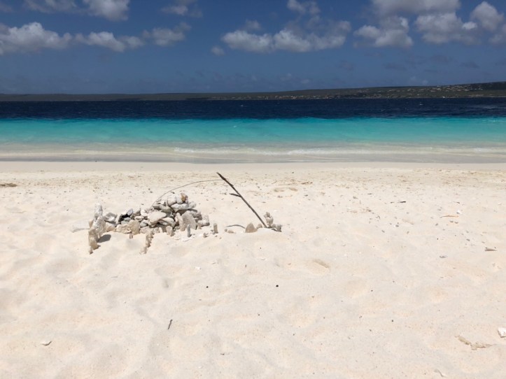 In Bonaire ist es unter Strafe gestellt, Korallen auszuführen. Und somit gibt es hier so viele davon, dass unser Herzkind große Bauten damit errichten kann.