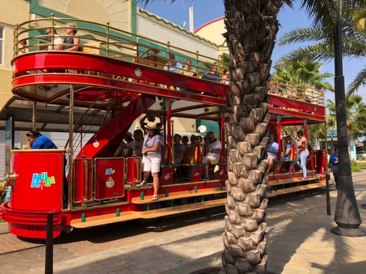 Eine kleine kostenfreie Bimmelbahn fährt durch die Stadt, die wir natürlich gerne nutzen.