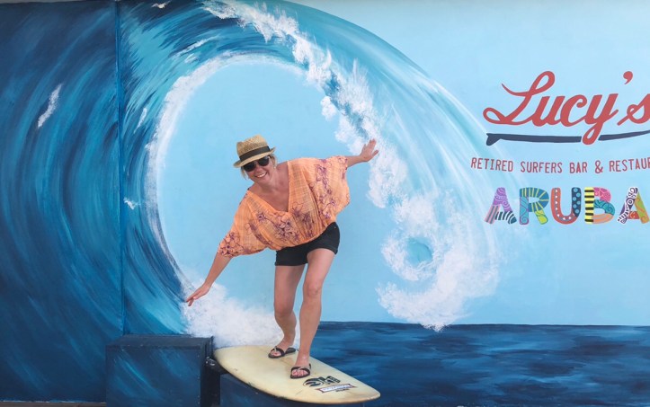 Und wir finden eine bemalte Wand mit einem Surfbrett, für lustige Fotos.