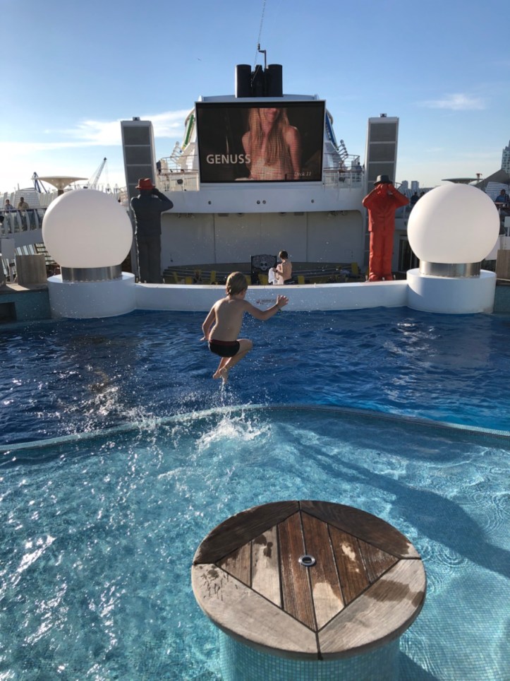 Was für ein grandioses Wetter! Unser Herzkind kann auf den Schiff direkt im Pool planschen. Ein Sommertag Mitte Oktober! Einfach unglaublich, dieser niemals endende Sommer 2018.