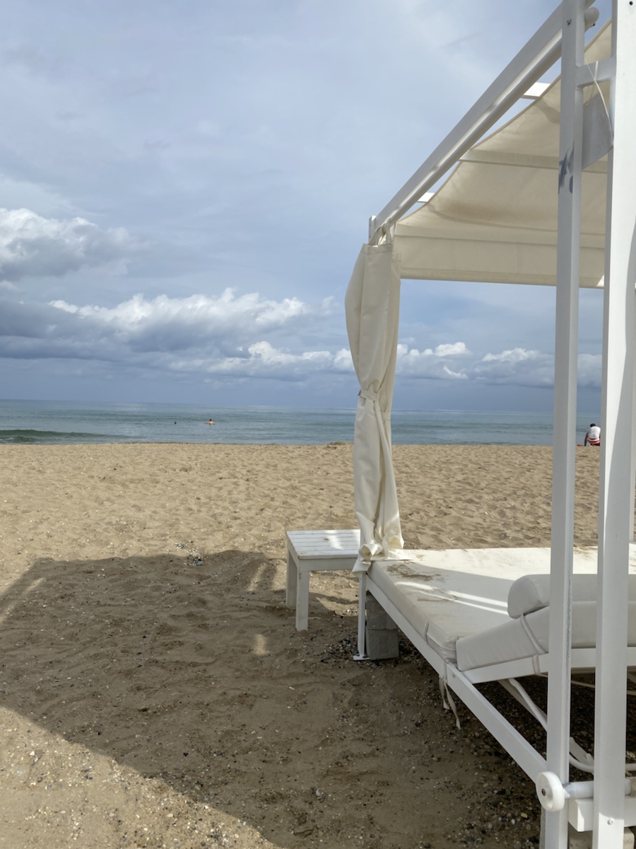 Heute steht Strand auf dem Programm. Nachdem wir ein gutes, Corona konformes Frühstück bekommen haben, bei dem alle Speisen am Buffet vom Personal auf den Teller getan werden und wir nur mit Maske auch etwas bekommen, laufen wir gerade mal ca. 100m durch eine Straßenunterführung zum Strand. Der ist wirklich sehr schön. Mit weiß gepolsterten, kostenfreien Liegen und Sonnenschirmen bestückt und dank der Jahreszeit (ja, vielleicht ist auch Corona eine Jahreszeit) recht leer. Und endlich kann der Urlaub beginnen…Das wäre jetzt eigentlich ein schönes Ende für meinen ersten Blogeintrag, wären da nicht die schwarzen Wolken, die sich an den Bergen hinter unserem Hotel allmählich auftürmen. Also gut, brechen wir unseren ersten Strand- und Badetag ab und fahren in den nächstgelegenen Supermarkt, da wir sowieso noch ein paar Getränke und Chips kaufen wollen. Im Zimmer mit Privatpool angekommen, schüttet es nun aus allen Eimern. Und was soll ich sagen, der Wetterbericht verheißt für die kommenden Tage nichts gutes. Aber zum Glück ist der Regen warm und unsere Bettchen gemütlich. Und die Gegend will ja schließlich auch erkundet werden. Also schmieden wir einen Plan für morgen…..Fortsetzung folgt 🙂